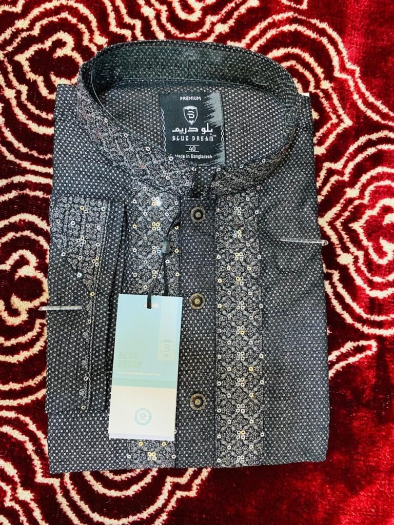 Made from soft, breathable cotton, this panjabi ensures maximum comfort while allowing you to stay stylish and cool throughout the day. The subtle, intricate floral pattern lends a touch of elegance and modernity, perfect for festive occasions, family gatherings, or cultural celebrations. Whether you’re attending a wedding, Eid celebration, or a casual dinner, this panjabi is versatile enough to suit any event.